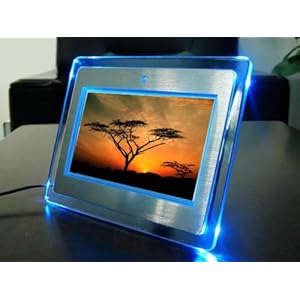 17,78cm (7" Zoll) Digitaler Bilderrahmen SILBER mit blauen LED-Leuchten - JETZT NEU: DIGITAL PANEL UND 800X480 HÖHERE AUFLÖSUNG FÜR BRILLANTE BILDQUALITÄT!!! Bilder-Videos-Musik in einem!!!